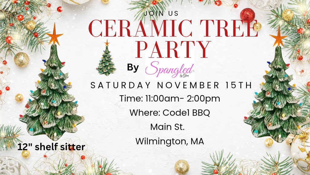 We’ll be painting a 12" ceramic Christmas tree shelf sitter, complete with a light kit to make it glow beautifully. 🌟