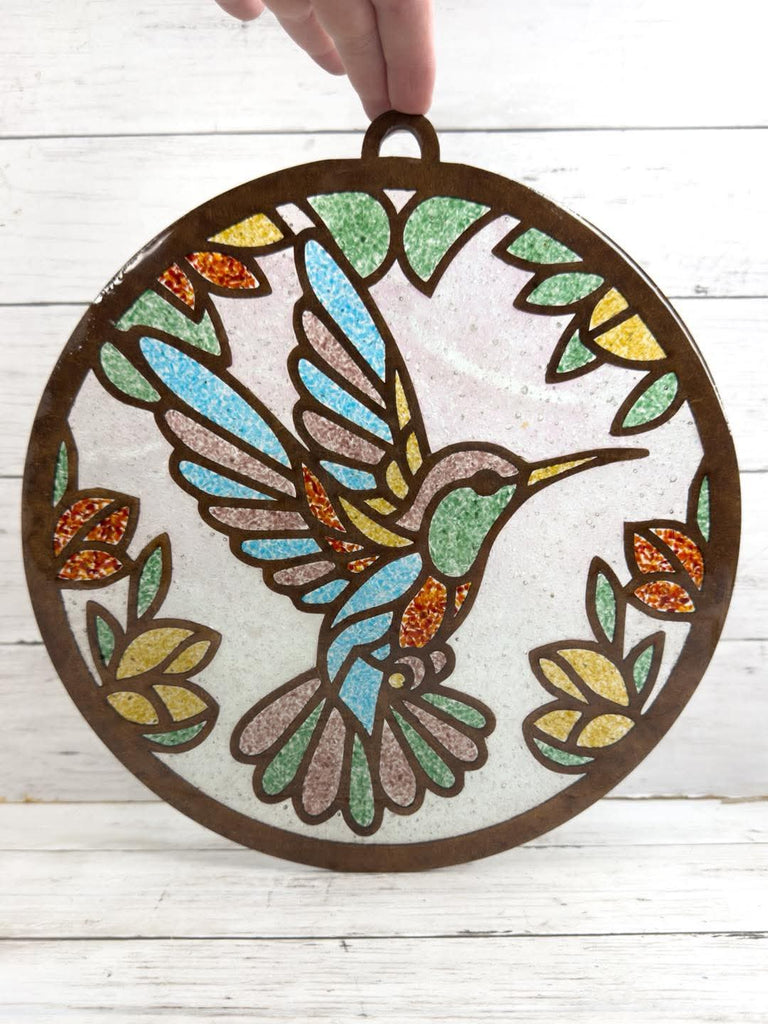 Join Gina from Spangled for a fun creative day creating a crushed glass & resin 12" sun catcher. Choose your shape and crushed glass colors and let your creativity do the rest. We will walk you through the entire project. We have multiple design options, choose your favorite at checkout and have some fun!